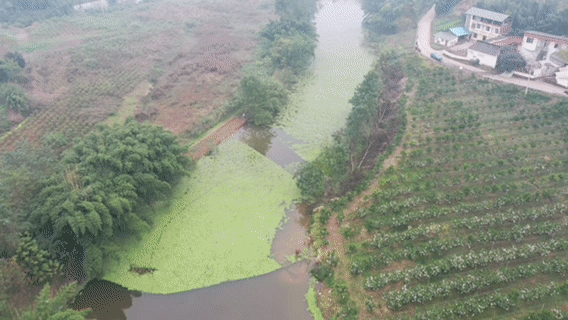 12月11日,封面新闻记者接到四川乐山井研县王村镇居民投诉,镇内磨池河堆积漂浮物达数百米,部分河面上还疑似有油污。